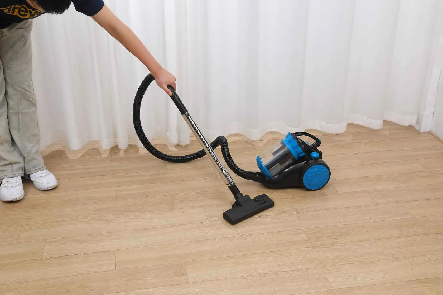 Gracias a su sistema de filtración ciclónica, asegura un aire más limpio y reduce la necesidad de mantenimiento del filtro. Además, su diseño con ruedas permite transportarla cómodamente entre habitaciones.
