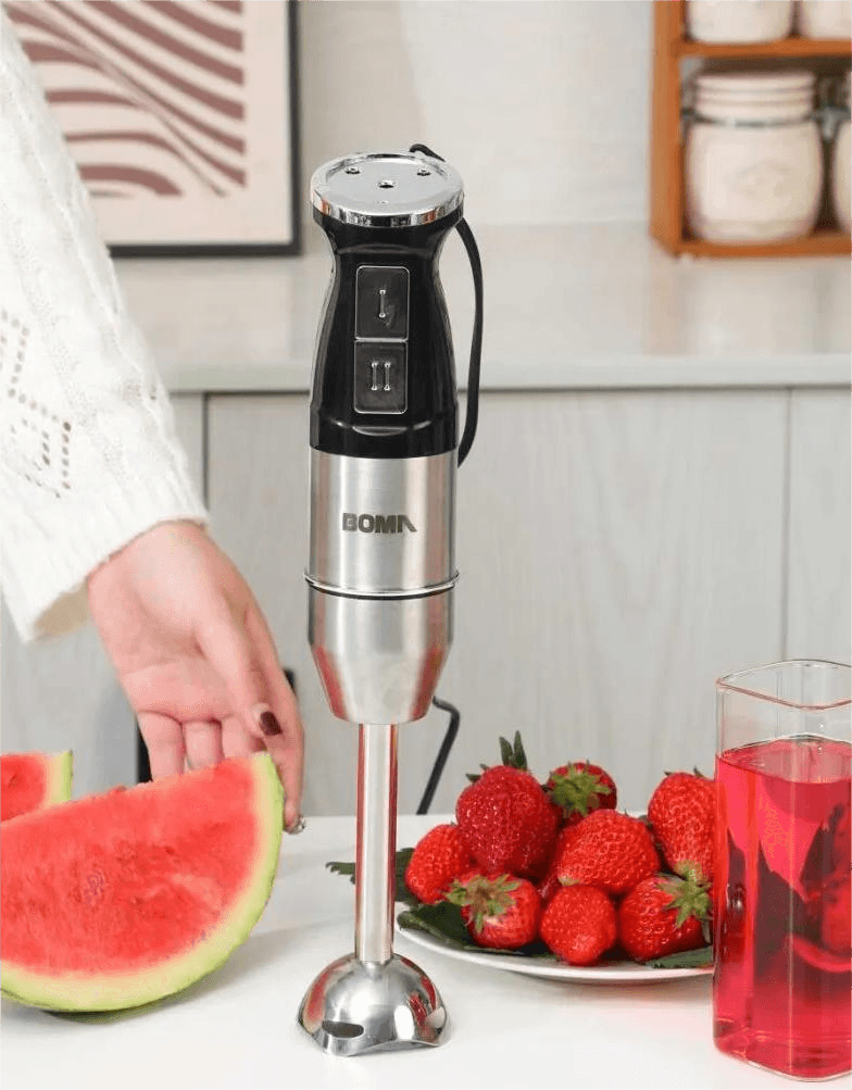 La batidora de mano BOMA es el aliado perfecto para optimizar tus tareas en la cocina. Equipada con un potente motor de cobre y dos niveles de velocidad, esta licuadora de inmersión combina practicidad y rendimiento en un solo equipo.