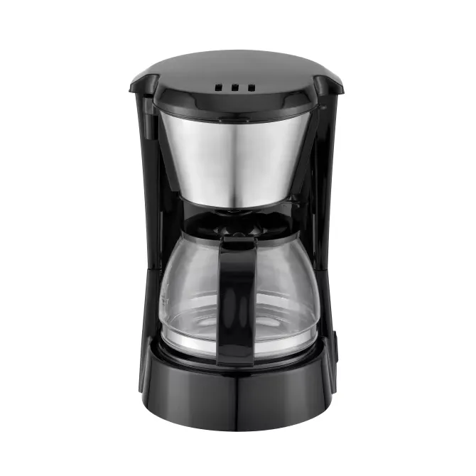 Su diseño compacto en color negro con detalles en acero inoxidable le da un estilo moderno y elegante que combina con cualquier cocina u oficina. Incluye una jarra de vidrio resistente al calor con asa ergonómica, que facilita servir el café de manera segura y cómoda.