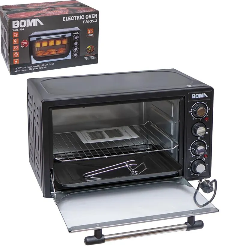 La BM-35-3 es una opción práctica y eficiente para quienes buscan un horno de tamaño medio que no ocupe demasiado espacio. Su capacidad de 35 litros lo hace perfecto para preparar pizzas, pollos pequeños, panes y postres.