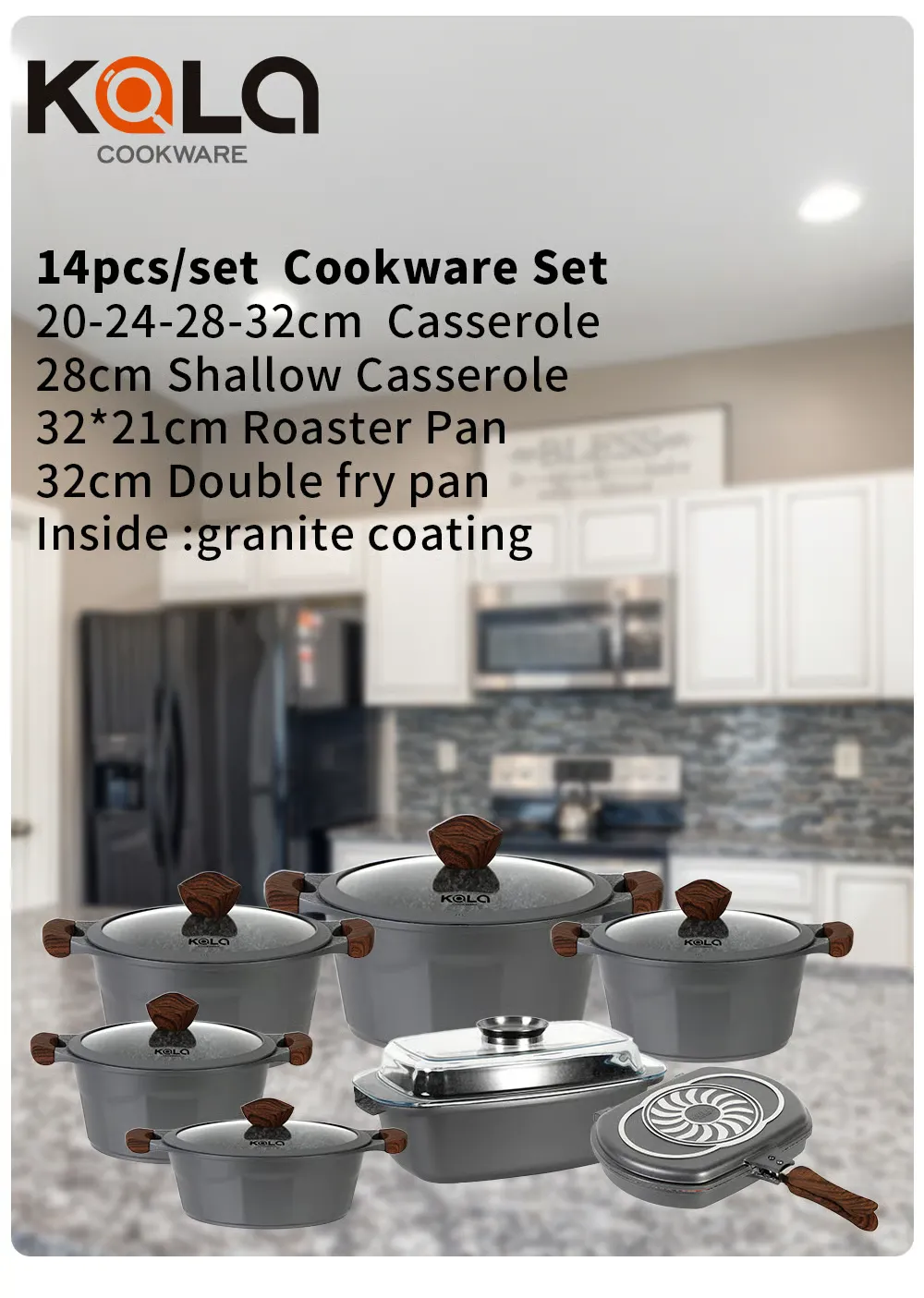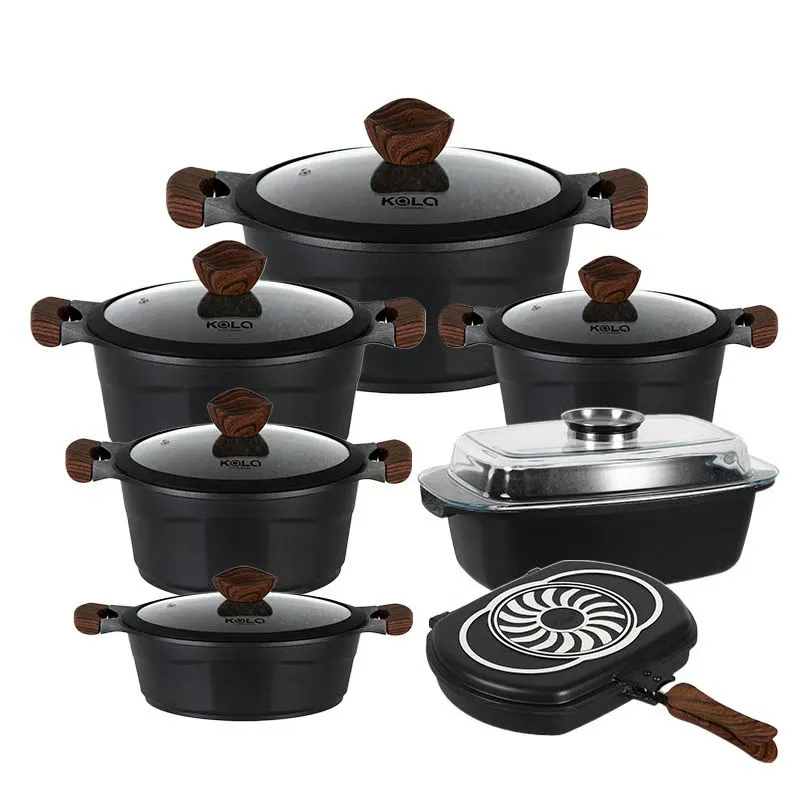 El KALA-017 es un set de cocina premium de 14 piezas, diseñado para quienes buscan durabilidad, estilo y practicidad en un solo juego. Fabricado en aluminio de alta resistencia con recubrimiento de roca volcánica antiadherente, garantiza una cocción uniforme y fácil limpieza.
