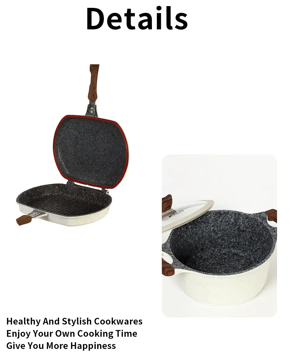 Sus tapas de vidrio templado permiten supervisar la cocción sin perder calor, mientras que las asas con acabado tipo madera natural brindan un diseño elegante y seguro. Compatible con cocinas de gas, eléctricas y vitrocerámicas, este juego es perfecto para preparar todo tipo de recetas.