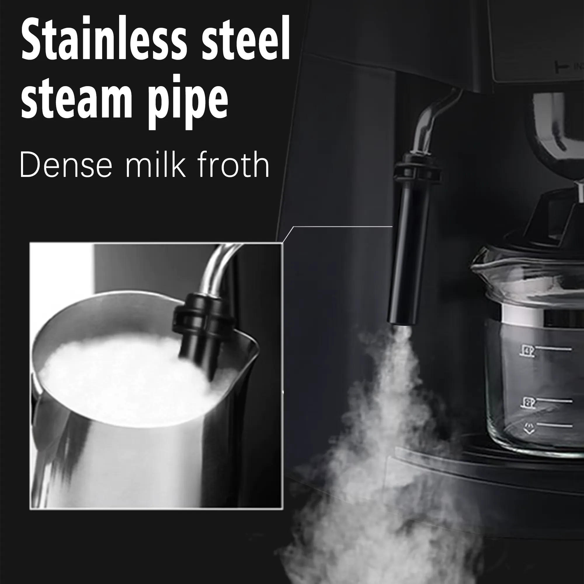 Su sistema de bomba de vapor garantiza un café con cuerpo y crema espesa, mientras que su vaporizador lateral es ideal para calentar o espumar leche y preparar bebidas como cappuccinos y lattes. Además, su jarra de vidrio resistente al calor permite ver la cantidad exacta de café preparado.