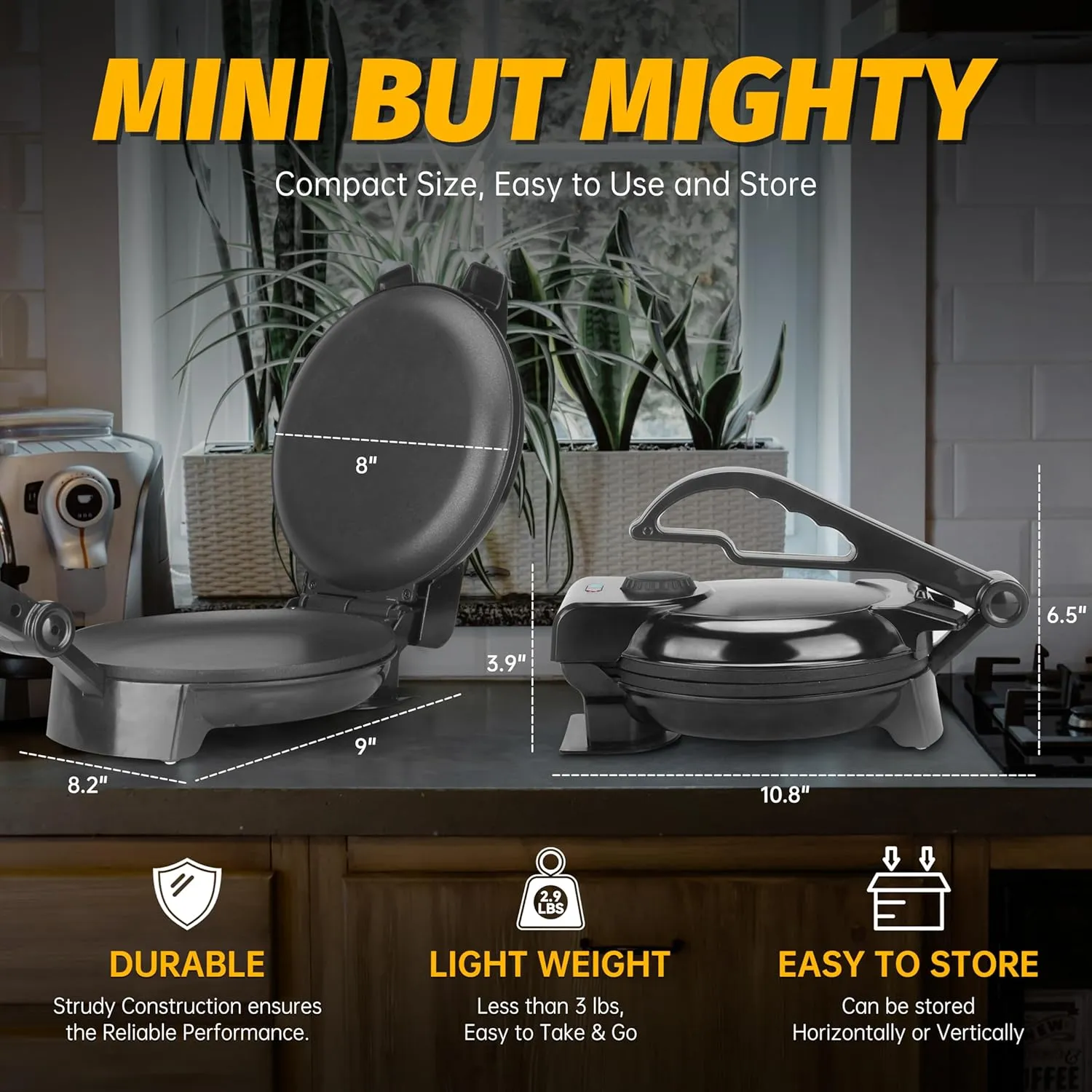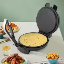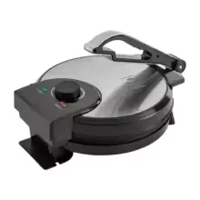 Con 1200W de potencia, alcanza rápidamente la temperatura ideal para una cocción uniforme, evitando que las masas se peguen gracias a su recubrimiento antiadherente de alta calidad. Además, incluye luces indicadoras de encendido y listo para usar, lo que facilita el control del proceso de cocción.