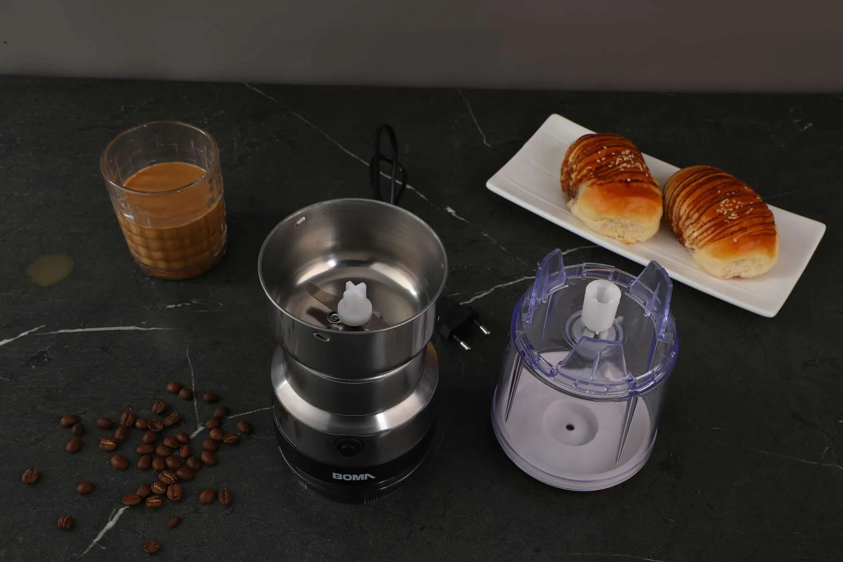 El molinillo BOMA BM-001F es un práctico 2 en 1 que combina potencia y versatilidad en un solo equipo. Con su motor de 300W y cuchillas de acero inoxidable de alta resistencia, permite moler granos de café, especias y cereales, además de picar frutos secos, vegetales y pequeños ingredientes de cocina.