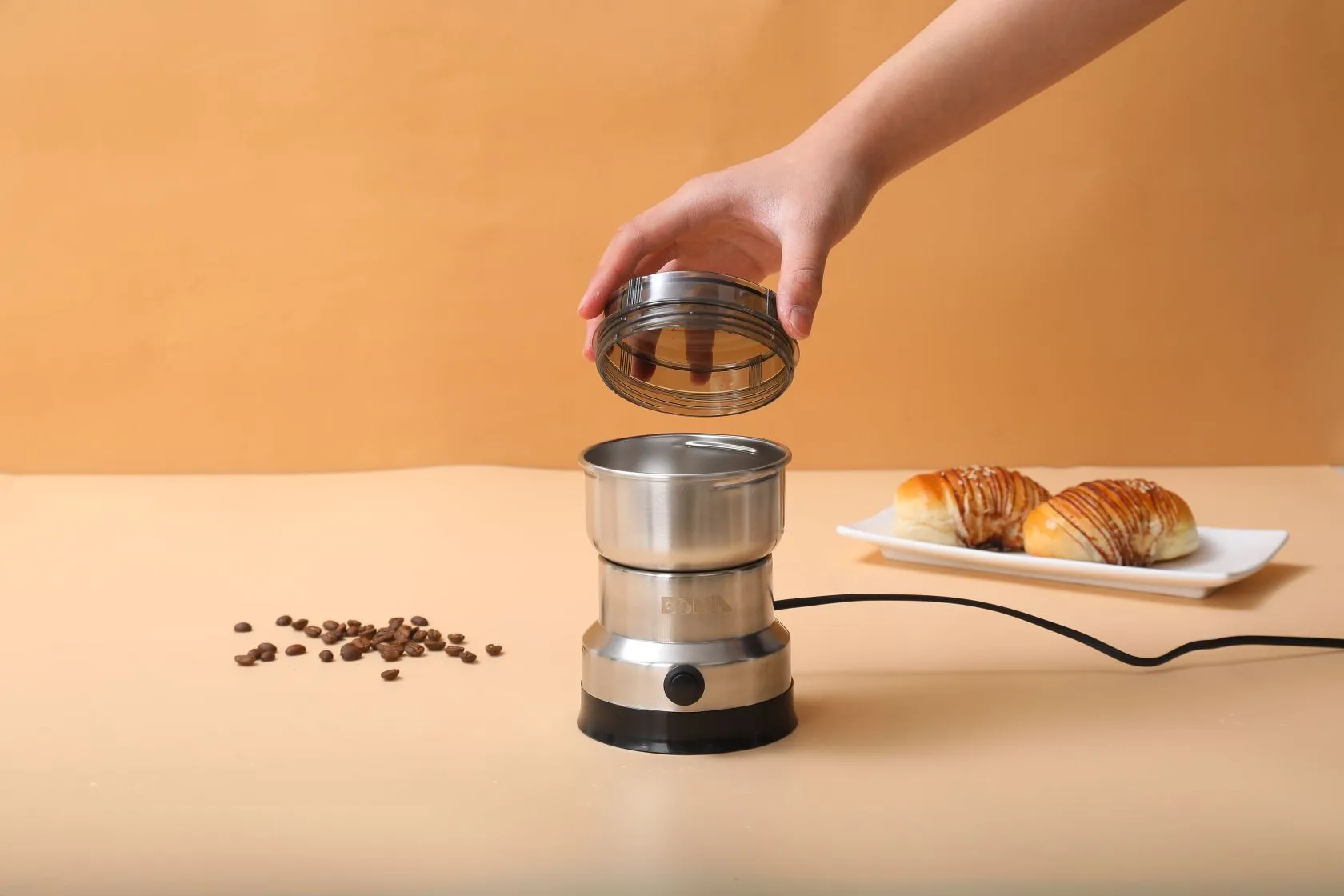 Tiene una capacidad de 85 gramos, ideal para porciones diarias y preparaciones frescas al instante. Su diseño en acero inoxidable con tapa transparente permite visualizar el proceso de molienda, mientras que su tamaño compacto facilita el almacenamiento en cualquier cocina.