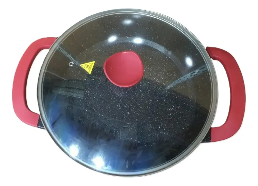 Su potencia de 1500W asegura un rendimiento rápido y uniforme. Está fabricada en materiales resistentes al calor, con revestimiento antiadherente que facilita la limpieza.