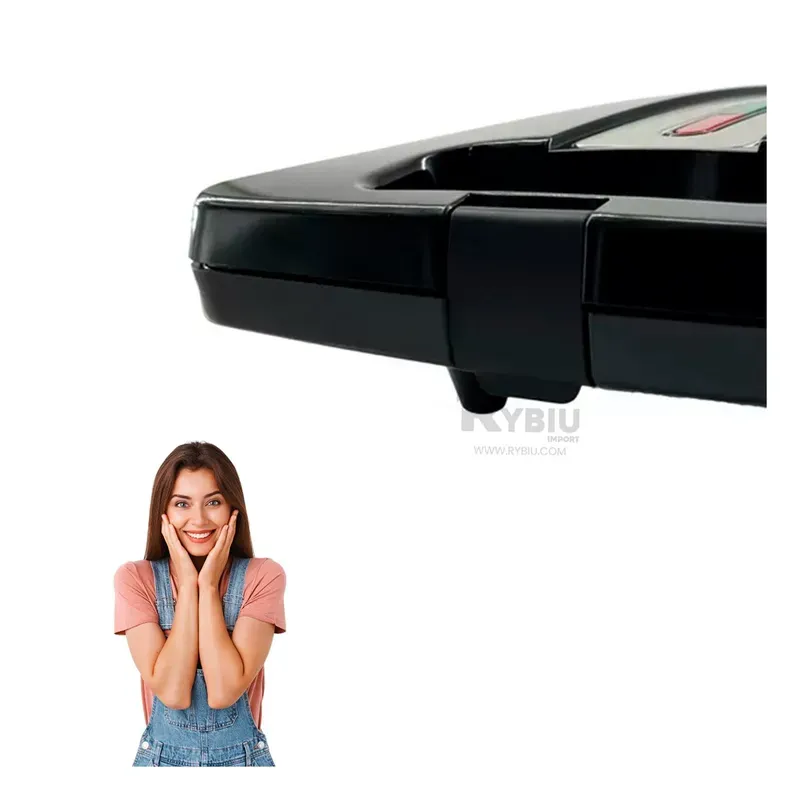 Sus placas antiadherentes facilitan la limpieza y evitan que los alimentos se peguen, mientras que las luces indicadoras de encendido y listo para usar aseguran un manejo práctico y seguro.