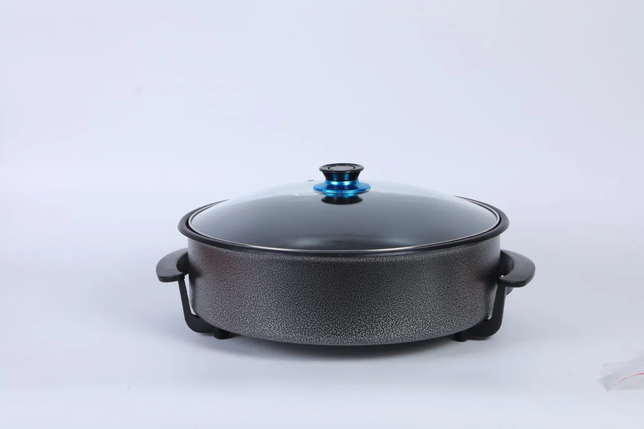 Con una potencia de 1500W y un termostato ajustable hasta 240°C, podrás freír, saltear, guisar, asar o incluso preparar pizzas de manera uniforme. Su recubrimiento antiadherente evita que los alimentos se peguen y facilita la limpieza.